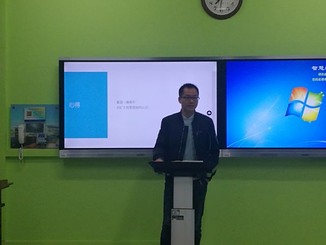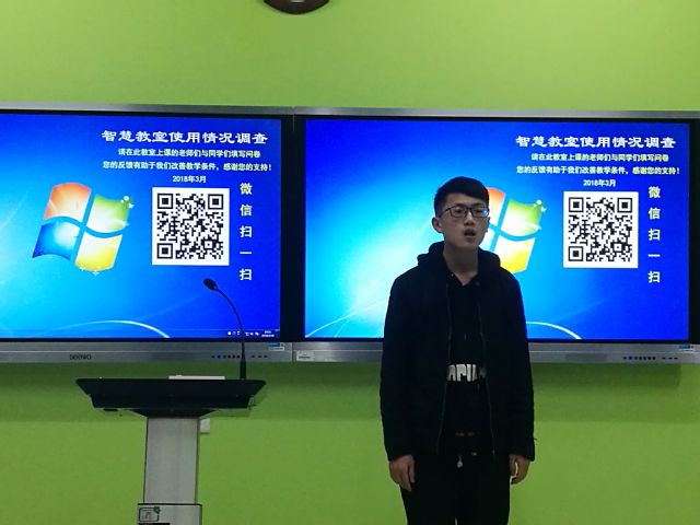 本次班会分为三个部分。首先在团支书时云杰的主持下进行入党积极分子评选,四名同学依次上台发言竞选。随后,在寒假实践活动交流环节中,三名参与寒假实践活动的同学利用精心制作的PPT向全班同学讲述自己寒假实践活动的经历, 台下同学不时发出掌声,会场气氛十分活跃。班长李逸舟说到:“希望下次假期能有更多的同学参与假期实践活动,丰富自己的假期生活。”班会最后,班主任邵振鲁上台总结,并帮助同学们规划新学期的目标。