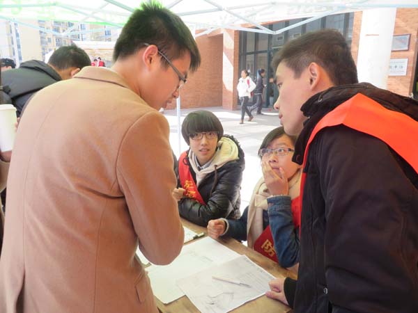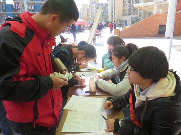活动一开始,就吸引了很多同学的目光,同学们纷纷停下匆忙的脚步,到活动的服务站台前询问具体情况。经过青年志愿者们的耐心讲解后,很多同学表示出了对这个活动的赞赏,并积极地参与其中。很短的时间内,就已经有十多位同学在申请表上签了自己的名字。活动如火如荼的进行着。志愿者们不厌其烦一遍又一遍地向不断咨询的新同学介绍公交卡的功能,并指导同学们有序的办理公交卡。此次活动在同学们满足的笑脸中成功举办,相信此次活动定会帮助不少的同学减少坐公交车所遇到的麻烦。