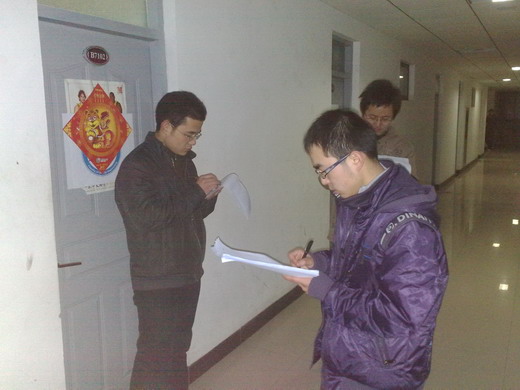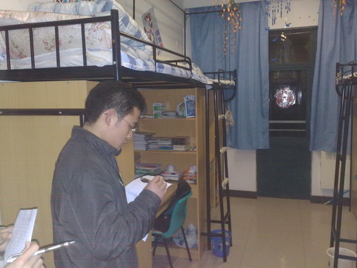 各学生宿舍进行全方位的检查。鉴于近年高校安全事故的教训,检查人员以卫生整洁、安全守纪、文明有序、有文化气息为标准,着重加强对使用违章电器等存在安全隐患方面的检查力度。检查过程中,涌现出不少卫生环境及人文建设突出的宿舍。