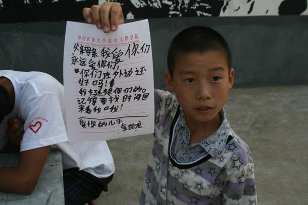 随后,实践团成员拿出提前精心准备好的信纸和信封递给王仕杰,帮助他寄信给父母,同时鼓励他利用假期努力调整自己的心态,变思念为动力,好好学习,努力打好基础,像他打理的树苗一样茁壮成长,才能不辜负父母的期盼,才能对得起辛苦在外工作的父母。团队一行还就上学期间如何缓解压力以及如何安排学习生活等问题,提出了一些可行的建议,并希望爷爷奶奶能和学校常联系,共同关注孩子的成长,共同解决困难。