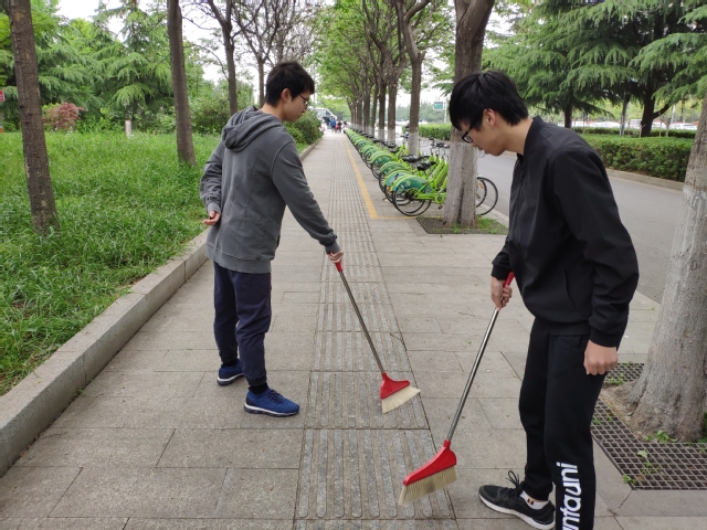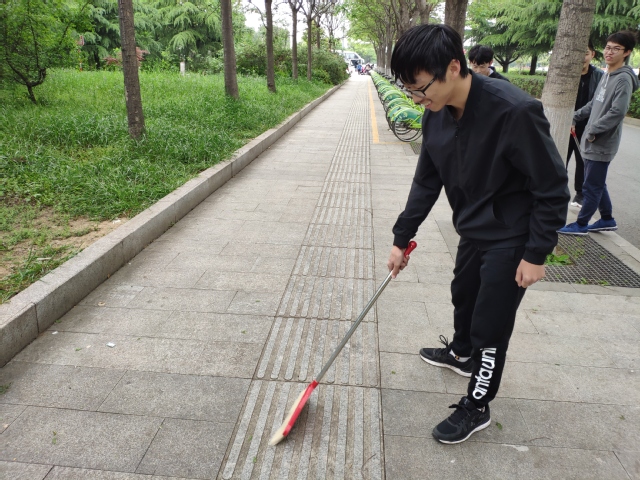 青年志愿者协会对矿大东门附近的盲道进行了义务清扫活动。