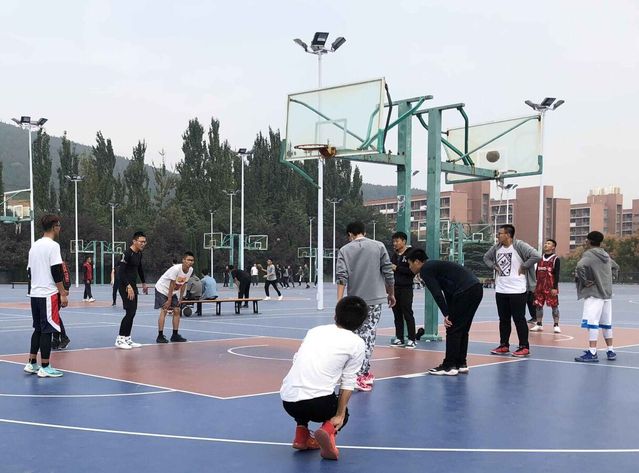 第一场比赛是高年级联队对阵18级新生队的表演赛。在钱雄书记跳球开赛后,激烈的拼抢也随之进行,双方球员争分夺秒,势均力敌。裁判员们客观公正,实事求是。精彩激烈的比赛赢得了现场观众奋力的呐喊声和加油声,刘世通老师也不禁加入到比赛中。最后,经过一个小时的激烈角逐,终场哨响,裁判员宣布结果,比赛正式结束。