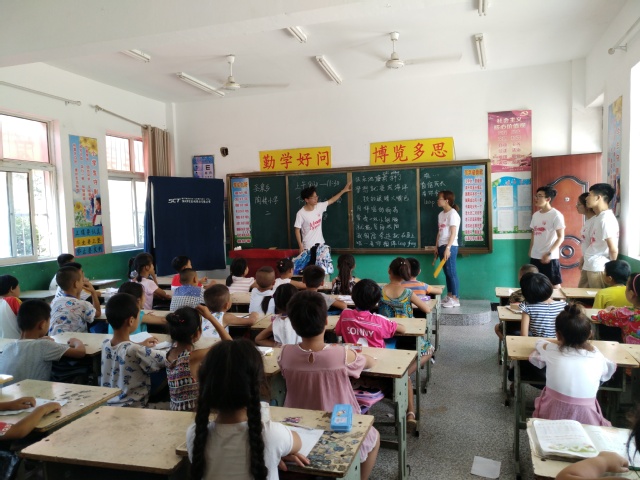 “仲夏希望”支教支教团在安徽萧县陶楼小学筹备年级合唱比赛活动,并组织学生们进行排练。