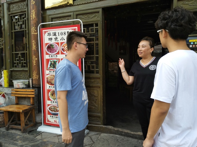 古城安全调研团平遥分队暑期实践团对古城大型客栈进行参观调研。