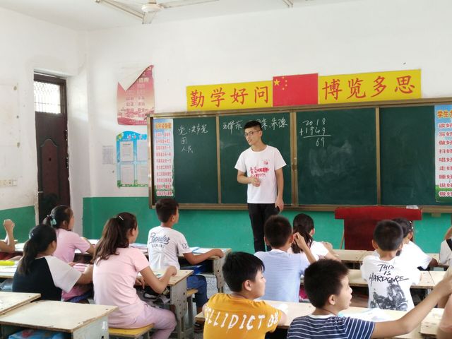 “仲夏希望”支教团在安徽萧县陶楼小学对小学生们就爱国教育主题进行授课。