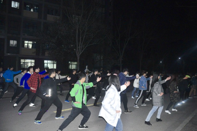 从3月12日开始,每天晚上9点,参加训练的同学们都准时在三运集合,进行太极拳的练习。训练过程中,同学们都认真的听教练讲解动作,学生教练也非常的尽心尽力,提醒同学们需要注意的每一个细节,将比较难的动作进行细致的分化讲解。在学生教练的指导下,同学们反复练习,仔细的领会每一个动作,每当遇到难点时都积极的请教,学生教练也给予了耐心的解答。同学们每次训练时间大约为一个小时,一周的训练下来,已经初见成效,行云流水的动作,一气呵成的招式无不彰显了安全学子的风采。