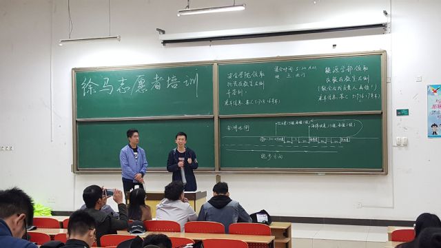 志愿者们始终认真听从安排,了解熟悉志愿者工作要求。志愿工作介绍结束后,志愿者们在梅三宿舍集合,进行分配物资。