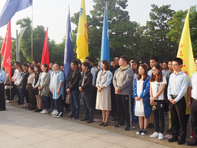 团委书记孙婷、辅导员刘世通与校级先进班集体安全17-1班全体同学参加仪式。