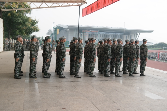 加强排同学们斗志昂扬的有序进场,在教官“立正、稍息、跨立”等一个个口令下,同学们步伐一致、口号嘹亮,将整理着装、稍息立正、停止间转法、跨立、齐步行进四个部分如行云流水般一起喝成。最后在全校师生的欢呼声中,同学们整齐的跑下主席台,在主席台左侧接受仪表检查。