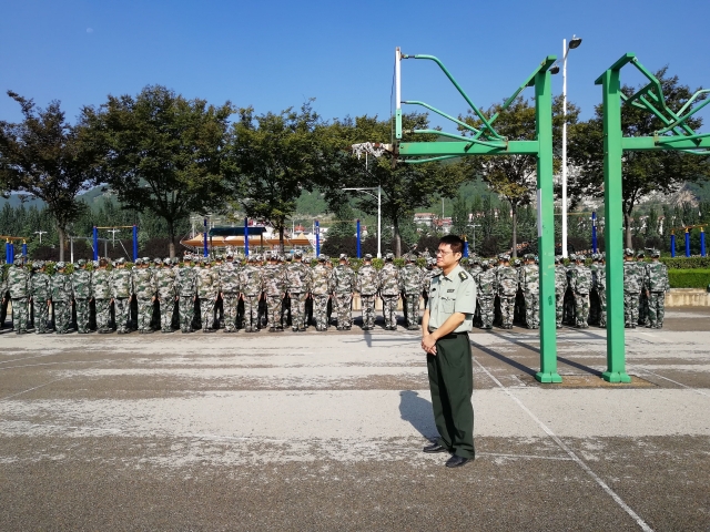 训练场上,同学们个个精神饱满,士气高昂,迈着整齐的步伐,喊着响亮的口号。校领导详细了解了新生军训工作的情况, 与部队官兵、参训新生亲切交流,对新生们刻苦训练的精神风貌给予了充分的肯定。随后,钱雄副书记还特别关心了在场外因身体原因无法参训的学生,了解了他们的学习生活情况,勉励他结合自身特长积极参与到通讯员队伍中。