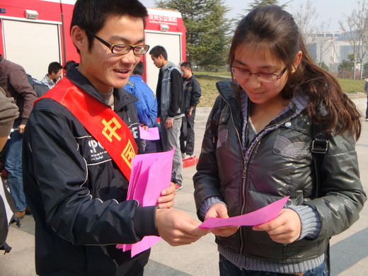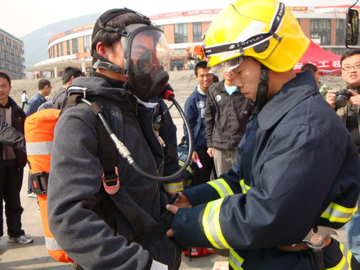 消防特勤二中队的战士们各各都装配整齐。当他们将各种消防设备陈列出来时,引起了同学们极大的兴趣。面对同学们的好奇和疑问,消防战士们耐心细致地进行了讲解。同时对救生、破拆、侦检、堵漏、输转等方面的消防设备进行了详尽的介绍,并协助同学们亲身体验 了消防设备的佩戴和使用,活动现场气氛十分活跃。章毛平书记在活动现场亲切地与消防官兵交谈,并与同学们就校园安全与消防知识进行沟通。活动期间青协成员为过往的同学们分发了校园防火自救知识的传单,积极的宣传消防知识。