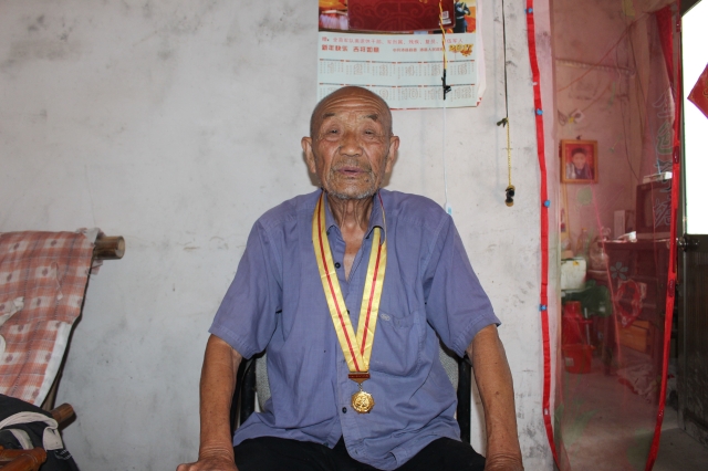 胡志河老前辈于1943年入伍,现已90高龄。家里有兄弟7人,当时一起当兵的,现只剩下胡志河老前辈一人。胡志河老前辈谈起入伍的原因:“我们那时候没有办法生活,就是那个四几年他们在当时四军撤了。日本人在微山湖,那里他们夜里用那个小汽艇开过来的占领了微山湖,那里那时候有个叫王万鼻子大汉奸,山东的王二鼻子和那个日本人一起在那个砀山了。那时候,国民党一下子就跑掉了就留了八路军打日本鬼子,来宣传抗日,再不抗日国家就要完了,那时候都宣传,四个父女俩个男的来的,然后俺们兄弟几个觉得人家讲的有道理,我们是中国人,要为保卫中国出口力!几天以后,有一个叫朱永元的,朱永元来找我父亲,说:我们弟兄几个在家也没有办法,那就走吧,那时候也不懂什么抗战也不抗战,在家也没有活路。”胡志河老前辈回忆起抗战的过程,真是历历在目:“我们用套筒子小套筒,那时候,个小扛不起来。当官当兵的都说:鬼子来了,从前方过来了!我们10个、8个看着彭彭打两枪,那时候武器不行,小米加步枪,都拉不开枪栓,要我们打两枪就拉不开枪栓,又没有油,所以没有什么擦枪的东西。那时候,都是打游击打两枪就跑的时候,一直要挖地下室,不管几十里路几百里路都要挖地下室,不挖地下室没法活啊,那些日本飞机啊,都是通通打两枪就钻沟里去,鬼子他们打不着,我们就10个、8个人他们也犯不着用飞机打我们。”