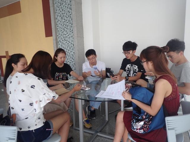 上午9时,队员们就来到图书馆开始工作。同学们首先联系了计划进行采访的送饭网创始人陈鑫,并与陈鑫学长预约了第二天的采访时间。随后,同学们结合自己希望通过采访来向学长提出的问题,共同讨论得出采访稿,其中问题包括了学长对大学生创新创业的看法,对大学生创新创业与学业均衡发展的建议,对大学生创新创业团队的建议等。最后,同学们为接下来几天街头采访与校园采访制订了详细的计划,根据大学创新创业所关心的问题,就全社会对大学生创新创业的看法制作了调查问卷。