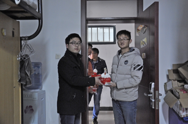 下午3时,两位辅导员助理,学生会副主席及志愿服务中心成员在梅三一楼活动室整理和分配礼品,负责人交代了各自任务及活动中礼仪问题。随后,各位成员拿着礼物走进每一位备战研究生考试的同学的宿舍,代表孙婷老师为他们提前送上平安果和贺卡。这些平安果由孙婷老师精心包裹,并且还为其一一设计了贺卡,每张贺卡都有各不相同的卡通人物及祝福语。同时,志愿服务成员和考研同学进行了简短,温馨的交流,表达了节日的祝福及对考研的鼓励。考研同学们接到这特别的礼物,也表达了自己内心的感谢,一位同学说道,“在这紧张而特殊的时刻,接到这份礼物,自己内心特别感激和喜悦,并且对接下来的考研更加拥有信心了。”在每位成员的辛勤努力下,将每个平安果送到考研学子的手里。