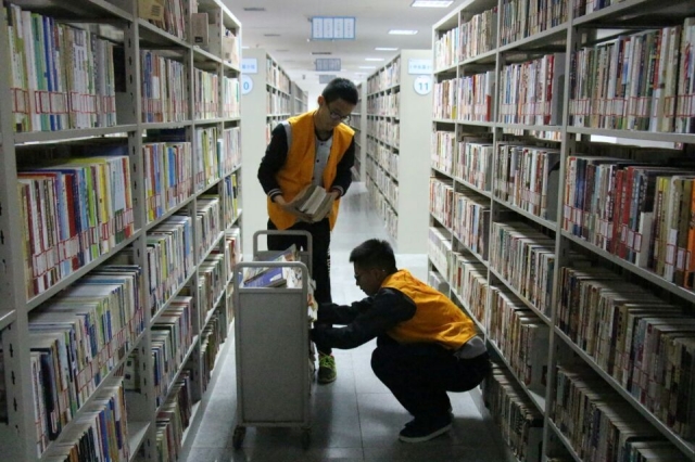 的志愿者们积极参与徐州市图书馆共建志愿活动,前往徐州市图书馆进行图书整理和卫生整理活动。