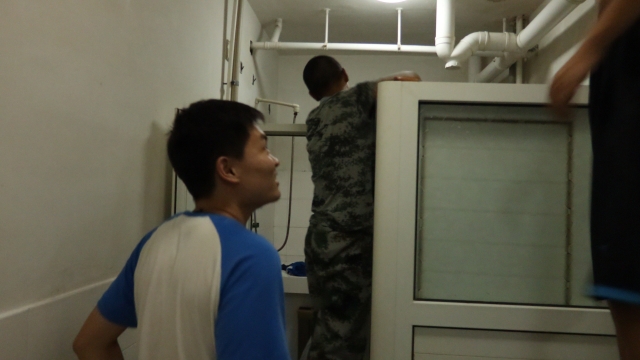 晚上7点,各年级辅导员助理、团委学生会的负责人们来到了新生宿舍,在进行简单的安排工作后,大家便迅速的进入了负责的宿舍。在新生宿舍,负责人们向新生详细介绍了内务整理的具体要求,包括宿舍门窗墙壁柜子的清洁、洗漱间的洁净等等。因为内务评比要求十分严格,负责人们又将每个细节进行讲解并强调,例如墙角,窗槽,阳台等卫生死角,还为新生们提供一些以前内务整理留下的宝贵经验。新生们认真记下内务中可能出现的问题以及所提供的解决方法。在学长学姐们的悉心指导下,新生们把各项事情做得井井有条,让整理工作得以有序高效的进行。