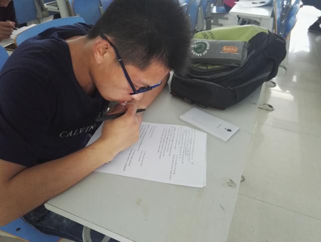 又开始进行新闻听力专项练习。下午4点左右,同学们陆续到齐,并开始准备考试。4点20分,学习部干事们开始为他们分发试卷。据悉,此次听力考试题型根据考纲要求,与四级考试题型大致相同。开始考试时,同学们都聚精会神的听听力,时而在草稿纸上记录,时而在试卷上做笔记填写答案。大约在26分钟后,听力考试结束。考生们对照答案,接着对照听力原文,弄清楚自己听不清楚和错误的地方,找出自己的问题所在。考试结束后,考生们大概了解了四级英语听力难度,并纷纷表示自己需在英语听力上不断努力。