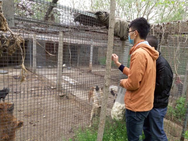 17日下午一点,全体志愿者在北门集合完毕,随后乘车前往徐州小动物救助中心。刚到达救助中心,志愿者们就感受到了小动物的“热情,”周围犬吠声不断。救助中心工作人员告诉志愿者们,收留的小动物以流浪狗为主,其中有很多小狗是被丢弃的,了解到这样的情况,同学们纷纷表示同情。在参观完基础设施后,全体志愿者在大门口集合,并在分队负责人的组织下分为男女两组,男生组帮忙搬运捐赠而来的物资;女生组则为小动物们准备粮食。搬运物资时志愿者们发现救助中心的设施非常简陋,建设也十分不完善,并了解到送来的物资也不多,甚至还不能满足所有小动物的生活所需。准备的粮食以馒头为主,为了让小动物们更好地食用和消化,女生将运来的大馒头撕成小馒头,并蘸上水喂给嗷嗷待哺的小狗小猫们。一些完成志愿工作的同学主动帮正在种植树苗的奶奶除草,或清理四处的垃圾。