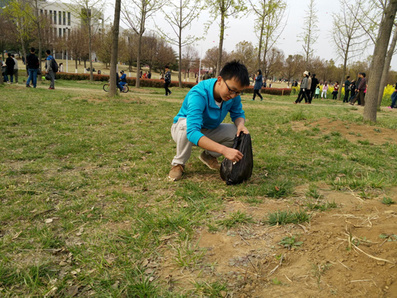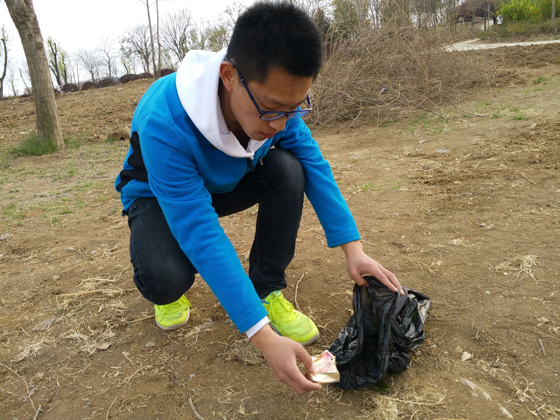 青协干事周鑫组织。志愿者们集合完毕后,蒋名军和周鑫对活动意义进行了简要的阐述,随后对志愿者们的工作进行分工。他们纷纷提着垃圾袋对教五大草坪和花海进行垃圾清理,同时向游客分发垃圾袋,并宣传“绿色出行,爱护环境”的理念。作为爱绿色,爱环保的志愿者们,他们不怕脏,不怕苦。,他们将路上的果壳,饮料瓶,烟蒂和餐巾纸等垃圾都一一拾起,放入垃圾袋,豪无一丝扭捏嫌弃。路边带孩子的母亲看到他们捡起垃圾时,对孩子教育到:“你看哥哥姐姐们都在捡垃圾,所以我们不能乱扔垃圾,要爱护环境,把垃圾都扔到垃圾娄里……”随着时间的推移,志愿者们完成了对教五大草坪和花海垃圾彻底清理,同时用行动向游客们宣传了“绿色出行,爱护环境”的理念。