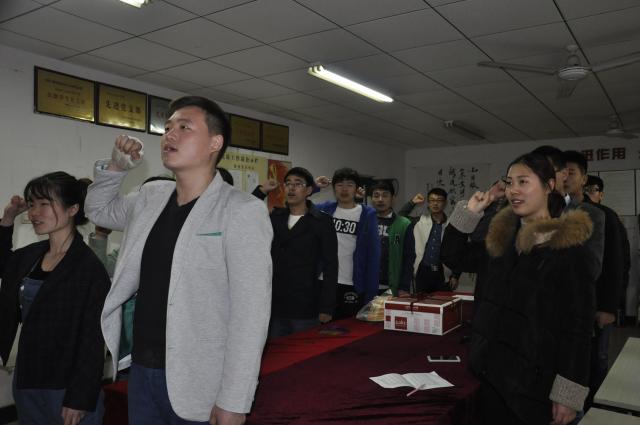 晚上7点整,活动准时开始。参加此次活动的人员有辅导员吴张蔚、党员、预备党员及发展对象。活动伊始,站长刘昱君发表开场白并领导宣读入党誓词,与会人员均高举右手庄严宣誓:“我志愿加入中国共产党……随时准备为党和人民牺牲一切、永不叛党!”铿锵的誓言承载着他们身上所背负的责任和使命。随后,大家开始畅谈自己的入党经历与感受。有的人曾为了报考公务员的便利而选择入党,有的听从父母的安排,有的为了融入心中神圣的共产党……但是,不论起点如何,在党的领导和党组织的关爱下,他们扛起了身上的重担,在学习和生活中保持积极向上,不断进取。接下来进入到了个人思想、生活、党员工作情况报告和总结环节。有人提到了党对约束自我、规范严谨方面起到的积极作用,重申了党“为人民服务”的宗旨,要统筹全局,从细微做起,为共产主义奋斗终身。活动尾声,大家“政治生日”蛋糕前虔诚许愿、分切蛋糕。在庄严却不失温情的氛围中,活动顺利结束。