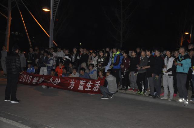 在第二田径运动场,参与了节能减排,爱护家园“地球一小时”夜跑活动。
