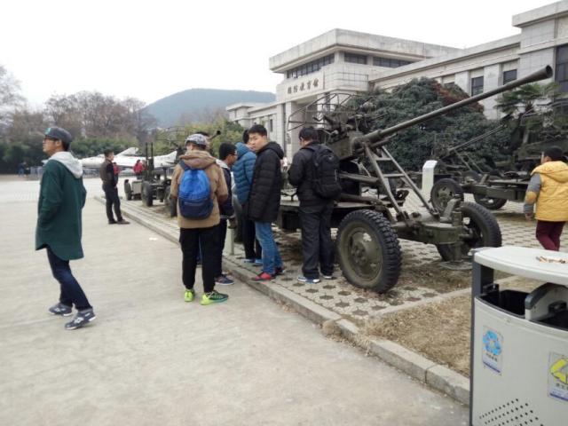 早上八点,同学们已经准时有序地在梅苑餐厅门口集合,随即在北门坐上公交车向淮海纪念塔出发。在公交车上,多位同学积极给老人和小朋友让座,体现了矿大学生尊老爱幼的品质。九点十分,全体同学到达目的,活动正式开始。首先,全体同学站在纪念塔下进行合影留恋,表示对红色历史的怀念和尊重。然后所有同学们在众游客面前齐声唱起了国歌,厚沉的男声与尖细的女声此起彼伏,歌声响亮,激昂有力,很多游客驻足一起歌唱。国歌唱完,最后由赵羽同学深情朗诵钱万清先生的诗文《一九三五年,中国的野菊花》,表达全体同学对“一二·九抗日救亡运动”的崇高的敬意,并用手机录下整个过程,作为纪念。塔下纪念活动结束后,班长徐天硕又带着同学们参观了淮海战役博物馆与武器陈列馆,拍下了许多照片,作为往后珍贵的记忆。