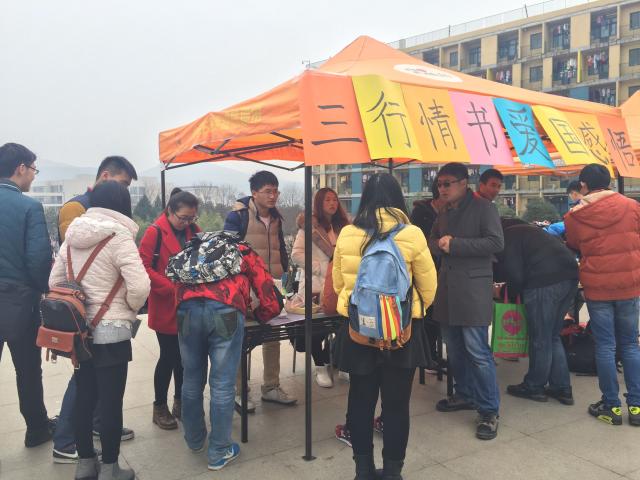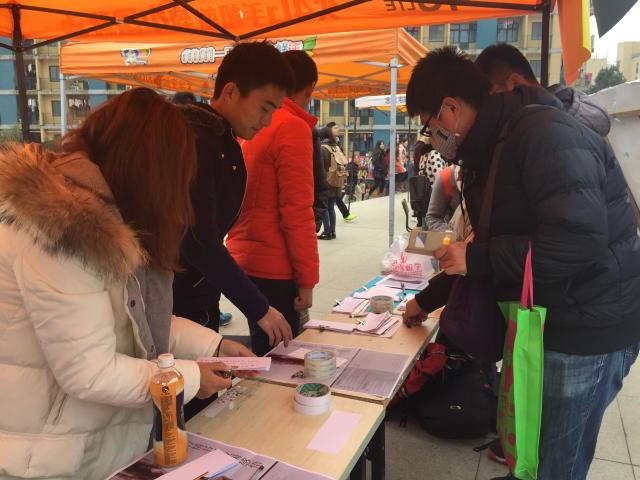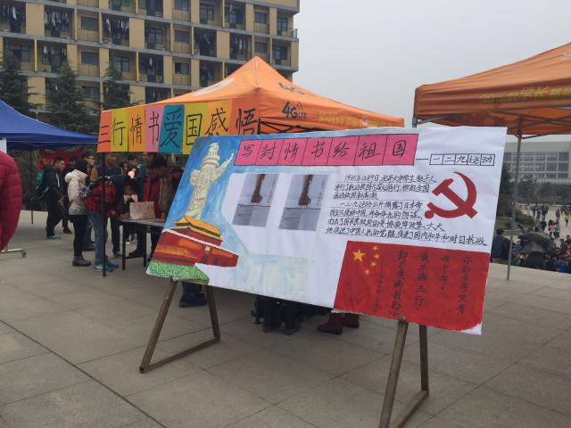 党站负责人在松苑餐厅前发出传单,并积极地向来往的同学们宣传此次活动的内容和意义,这吸引了很多同学前来投稿。其中有一名女同学还在稿件上写下了“为祖国和民族富强而奋斗”的慷慨语句,字里行间强烈地透露出对祖国的热爱之情。