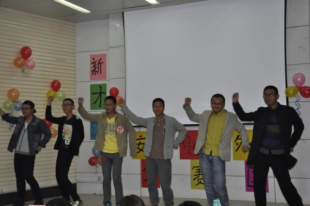 晚上七点主持人登台宣布比赛开始,首先是主持人比拼,四位选手口齿伶俐、谈吐优雅,面对评委提出的突发问题沉着冷静、从容应答,尽显老将的成熟。随后歌声嘹亮,优美的音符跳跃在教室里,二十二名选手轮番登场,用声音向观众传达温情,用眼神感染台下观众,有《分手快乐》表达失恋后的释怀,也有《想你的夜》对恋人的思念,还有葫芦丝吹奏的《小苹果》、《青花瓷》,最后一段B-box更是把观众带向高潮。舞蹈类也可谓是高手云集,有雷人舞《天雷滚滚》带给观众欢乐,还有优美的拉丁舞,两人熟练的配合与专业的舞姿获得了观众的一致好评,中华民族渊源流传的武术更是让人眼前一亮,随后评委认真地点评了每一位选手,指出进步的空间,选手们友好地握手,比赛圆满结束。