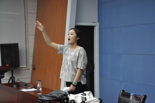 晚七点整,郑文奇老师带领新生准时到达集合点,做简要的说明之后,红歌负责人和往常一样,首先引领同学们做了一些准备工作,然后进入红歌练习环节。此次训练的歌曲是《走向复兴》,这首歌符合时代主题,更具时代的声音。为了提高训练效率,教练教给了新生一个小诀窍:每个新生都从座位上站了起来,跟着教练的动作,一边挥舞胳膊,一边发出凝聚而短促的声音,洪亮的声音萦绕在会议室中。在发音训练结束后开始进行演唱练习,每次演唱后,教练都会指出其中问题所在。为了解决新生跟不上演唱节奏的问题,指导老师带领大家在合唱的过程中用拳击掌找准节奏。并要求同学们在一次次的演唱中加以改正。红歌激昂,新生们的热情也十分高涨,一个个都积极配合,态度认真。此外,红歌比赛将定于本月14号进行。