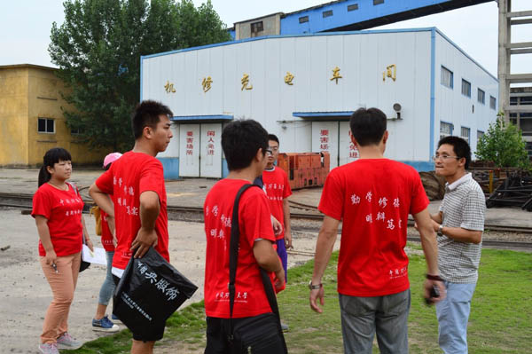 参观第一天,陈老师首先带领实践团来到煤矿安全生产调度指挥中心,向实践团解说每个监控画面对应的井下具体位置及作用,并强调了调度中心对煤矿安全生产的重要性。随后,实践团一行随陈老师参观了地面上的井下掘进设备,如履带式全液压钻机和普通钻机等器械,认识了钻机的工作原理以及打钻过程中应对各种意外的技术措施。第二天,实践团成员们随陈老师依次参观了煤矿瓦斯抽放泵站和主副井井口,并了解到煤矿井下瓦斯抽放工作和瓦斯利用情况、矿工下井前的准备工作等要领。实践团通过学习,对安全设备和技术有了更深入的认识。29日,实践团来到机修充电车间,面对繁多复杂的装置,现场发出一片唏嘘。陈老师强调在进入机修车间前必须有严格的穿戴管理,并为大家介绍了各种设备有关损坏维修的知识。之后,在老师的带领下,实践团还参观了煤矿煤炭筛选及加工设备,陈老师边比划边为大家现场讲解煤炭升井后经过的每一道加工程序及其重要性。