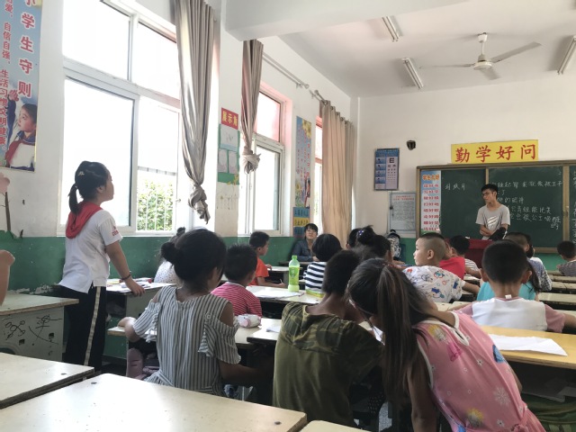“仲夏希望”支教团给陶楼小学的学生们带来有关雷雨天的安全防范宣讲。