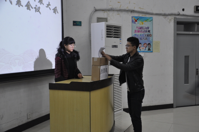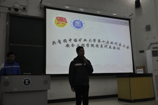 本次会议的主要议程是选举产生共青团中国矿业大学第十五次代表大会成员。由主持人艾克宣读候选人简历,并在背景屏幕进行播放,为团员代表们展示了候选人的主要经历。宣读结束后,投票开始,各团支部代表有序上台,将选票投入选票箱,经过唱票、监票和统计程序,孙一伟、袁野等10名同学当选中国矿业大学第十五次代表大会成员。会议最后,艾克发表结束语,并对当选的同学表示祝贺。