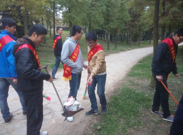 服务分队E.F组在校服务分队的组织下由郭鑫组长带队去不显山开始“创洁净校园””之行。