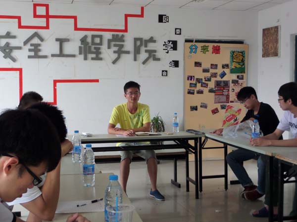此次会议的主要目的是向团队的每个成员介绍社会实践的主要流程以及各个成员的分工,还有各项后期工作的详细安排。会议伊始,董齐齐便切入正题,向同学们认真阐述了此次暑期实践的意义。他指出,徐州的环境在近年来变得越来越差,一名大学生有责任也有义务去努力改变这种现状,寻找最美丽的蓝天。在为期一周左右的社会实践中,“寻找蓝天”社会实践团将遵循宣传与做事相结合的原则,在做事的基础上宣传,建立环境保护基地,充分利用模范带头的作用。除此之外,他还深入分析了在活动中可能遇到的问题,并粗略地制定了一些应对的计划。最后,他分配了每个成员的具体任务,并告诫同学们一定要尽最大地努力去完成这项暑期实践项目。会后,同学们纷纷表示此次动员大会激发了自己的投入热情,希望可以为环境保护出一份力。
