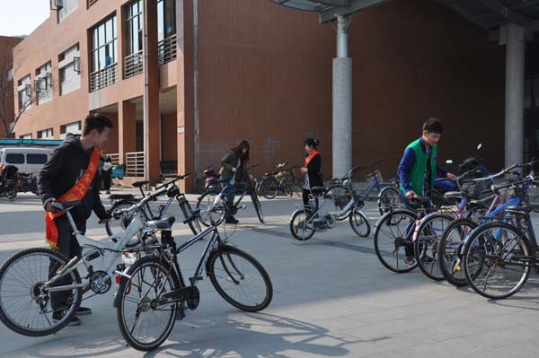 下午三点,安全13-1班同学聚集在三食堂广场,开始志愿扶车活动。他们按照分工,先从三食堂广场开始,纷纷走向自己所负责的区域查看被风吹倒的自行车并将之扶起。扶车活动过程中同学们表现积极,班上团员及入党积极分子,更是发挥了党员团员的先进性及先锋模范,带头参加志愿服务活动。接着他们一路向北,沿途只要看到有倒下的车子,都会上去扶起来。他们经过竹苑,二食堂,桃苑,然后折返,最后到梅苑,总共两个多小时。在这个阳光明媚,春意盎然的下午,安全13-1班人的身影足迹遍布校园的角落。这次活动一方面发扬了志愿精神,雷锋精神,另一方面,也创造了一个机会让13-1班同学聚在一起,增强了班级的凝聚力与团结。
