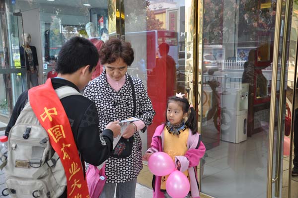 及各院青协通过卖报纸的形式向广大社会群众发起募捐的提倡,积极筹集善款。义卖得到了广大群众的大力支持,志愿者们手中的报纸不一会儿就已经所剩无几。