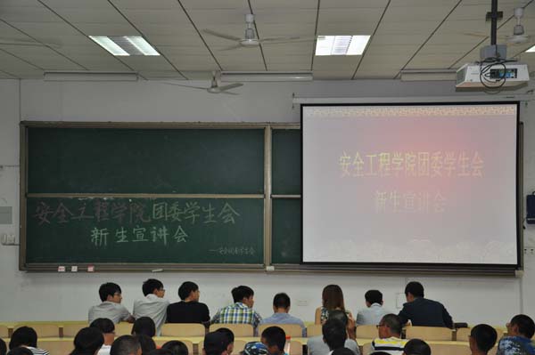 团委学生会新生宣讲会在教五A107举办。团委学生会全体成员及全体大一新生参加了本次宣讲会,宣讲会由消防12-1班王士坦主持。