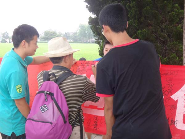 2012级青岛寻访中国梦、传递正能量社会实践团队在青岛火车站、街头、景区等地开展“青岛印象”主题调研,大家纷纷写下了自己的中国梦,并签上了自己的名字。