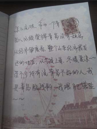 实践团队希望通过这次主题调研,找到青岛市人民感到幸福的具体真实的原因,从而发现全国人民如何才会感到幸福,找到“中国梦”的真正内涵,并发现实现“中国梦”的具体可行的方案。调研中,一位在长凳上悠闲的吹口琴的老大爷写道:“我的中国梦就是祖国繁荣昌盛,人民安居乐业,全国人民都能幸福满足的生活。”看来即使是平凡人也能孕育出伟大的不平凡的梦想。最后,在青岛人民的积极帮助下,实践团队收集了整整一个本子的“青岛印象”和签名,出色的完成了本次社会实践的第一个任务。