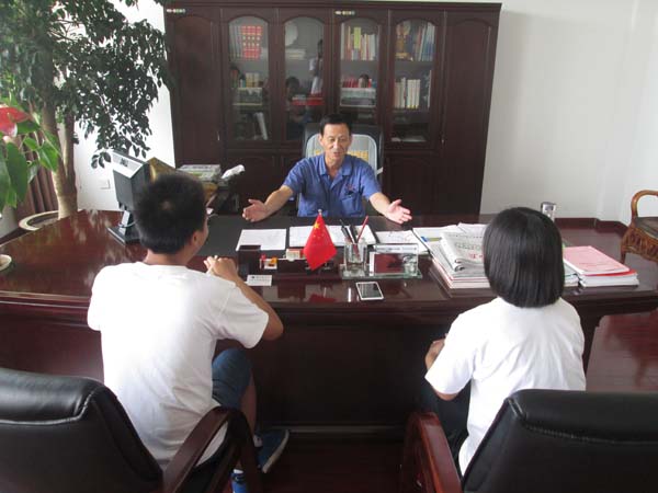 上午十点半,在梁卫民副总经理的办公室,团队通讯员对他进行采访。梁总经理上一波客人刚走,马上又热情地招待了同学们。队员们主要在机械厂与煤炭产业的关联、机械厂的发展前景以及矿大学生在机械厂的就业方面提出了疑问,梁副总则做出了细致的回答。在交流中队员们收获颇多,他们不仅了解到了机械厂厂区搬迁、十年变革突飞猛进,也明白了中国煤炭产业现今处于略低潮,而未来发展全靠科技进步来向欧美国家进一步靠拢,甚至达到一举超越。而在大学生自身方面,队员们明白了如机械厂一样的国有企业对稳定的人才的需求。大学生要学会认同企业,对企业有归属感,才能得到企业的认同。而这些都是队员们在学校不可能有的了解。