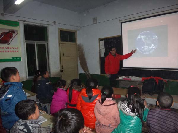 志愿者到达学校时,正值孩子们晚自习写作业的时间。孩子们轻声询问问题时,志愿者都一一为他们讲解。现如今,由于当地教学资源和条件较差,孩子们很少能接触到课本之外的知识。所以在帮助孩子们完成作业之后,志愿者们便以幻灯片的方式向孩子们普及了许多有关地理、历史等方面的知识。听课时,孩子们都认真地注视着幻灯片,还有不少孩子认真做着笔记。当志愿者向他们提问时,孩子们纷纷踊跃的举手,争抢着发言,整个课堂充溢着欢乐的气氛。下课之后,孩子们仍然围着志愿者询问各种各样的问题。其中一个小女孩甚至向众人承诺,今后也要当一名志愿者,为他人带去知识和快乐。