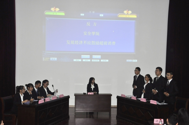 从资源环境和市场调节方面进行论述。攻辩环节,双方二三辩轮流提问,一针见血,提出许多犀利的问题,展现大学生良好的思维能力。自由辩环节,双方更是你来我往,各显神通,互不相让,赢得现场阵阵掌声。总结陈词阶段,双方四辩以简洁深刻的语言重申己方观点。安全辩手抓住对方逻辑上的漏洞,据理力争,彰显安全风采。继短暂而精彩的观众提问环节之后,评委对各参赛队伍的优点与不足进行了详细的点评,对主题进行了深度剖析并选出正方三辩为本场最佳辩手。