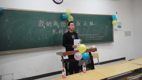 创业雄鹰社联合承办的“我的创业之路”系列讲座二在教四B102成功举办。本次讲座由环测创业协会主席曾鸣主持。徐州红点信息科技有限公司创办者兼美味佳品和美包佳品的总经理――梁万成作为演讲嘉宾出席了本次活动。