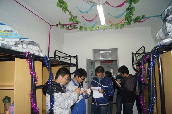 大一新生宿舍进行装扮评比,此次评比由生活部部长林华文带领开展。