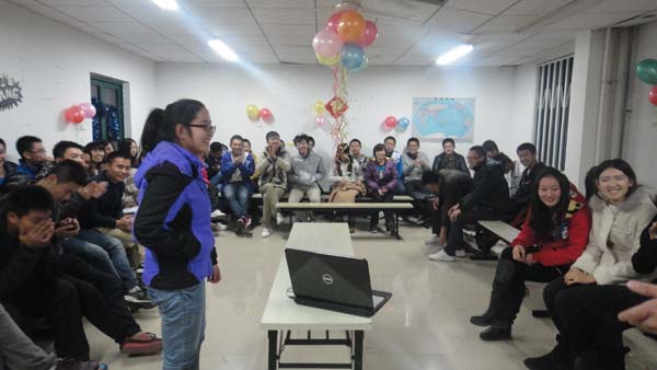 晚上7时许,参加此次活动的同学们陆续的来到活动举办地点,领取由主办方准备好的号码牌并对号入座。7时30分,活动正式开始,首先,主持人肖义萌介绍了本次活动的举办流程,本次活动包含相濡以沫、贴鼻子、吹气球和吹乒乓球四个游戏。每个游戏都有两位主持人各带一队进行竞争,失败的队伍将接受惩罚。在主持人宣布完活动的流程后,同学们便积极的参与到游戏之中。本次活动包含的四个游戏都极具趣味性,“贴鼻子”考验选手的方向感,“吹气球”比较选手们的肺活量,而频频将活动带向高潮的“相濡以沫”既对参赛选手的身体协调性有很高的要求,又考验指挥者与参赛两位选手的默契程度。在这一环节中,肖义萌带领的队伍表现良好,在指挥者和参赛者的共同努力下,以最短的时间完成了比赛任务,获得了本回合的胜利。紧接着,王炼带领的队伍接受了“真心话与大冒险”的惩罚,其中幽默不断,使观众席的同学发出阵阵笑声。晚上10时,活动在愉悦的气氛中画上了圆满的句号。
