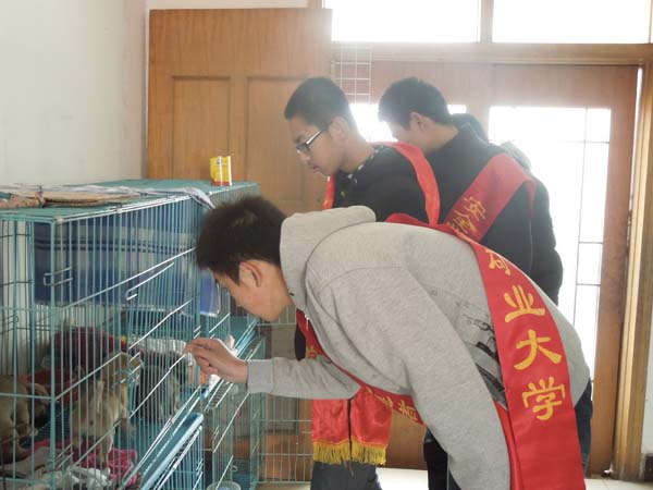 当天上午十时,活动成员们准时在我校北门集结完毕,随后一行人踏上了赴小动物救助站的路途。在抵达目的地后,队员们根据事先安排好的计划,将同学们捐赠的衣服和食物以及募捐来的200多元一并交给了救助站有关人员。站长对同学们的到来表示了热烈的欢迎,同时对同学们对小动物给予如此大的关心和帮助表示了深深的谢意。随后,在有关人员的带领下,活动成员们参观了小动物救助站。参观过程中,队员们就目前小动物被遗弃的形势和小动物的生活现状进行了关切的询问。