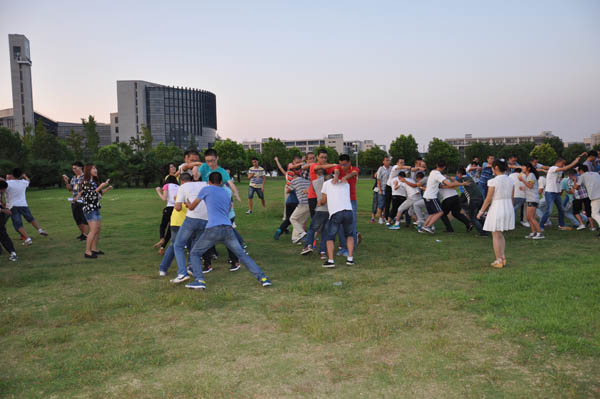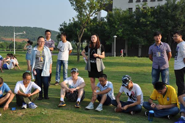 团委学生会成员在教五草坪对14级新生进行团体辅导。14级辅导员孙婷、郑文奇老师,倪炎老师出席了此次团辅活动。