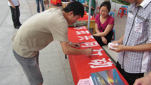 本次活动共分为四个部分,分别以消防安全知识有奖问答、安全栓使用现场演示、消防安全知识宣传单发放以及以横幅的形式等四种不同的形式向同学们宣传消防安全知识,并号召同学们践行“你我共同行动,共建平安校园”。其中负责消防栓使用演示的同学一次次地向路过的同学演示并说明消防栓的使用要点,使得消防安全的宣传不仅仅停留在纸面上,而且落实在实践中,极大的增加了本次活动的实用性。而对于我们所号召的“你我共同行动,共建平安校园”,同学们纷纷在横幅上签字以示对于校园消防安全的关心。