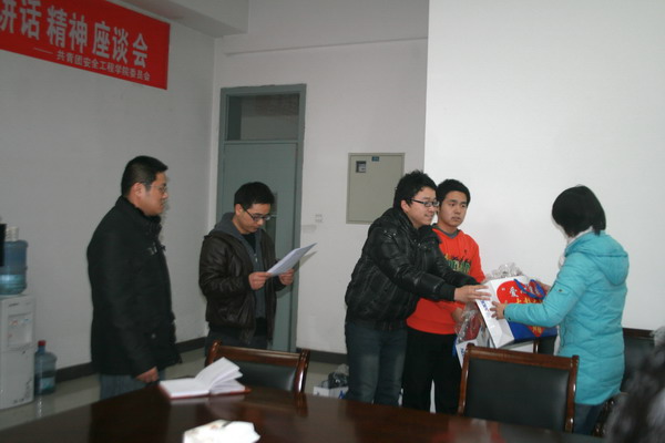 12月14日16时,新澳门六合彩预测 在新澳门六合彩预测 会议室集中向11级部分家庭经济特困同学发放寒衣。新澳门六合彩预测 党委副书记钱雄,辅导员刘永杰老师出席了本次寒衣发放仪式,接受寒衣补助的30名学生参加了本次仪式。