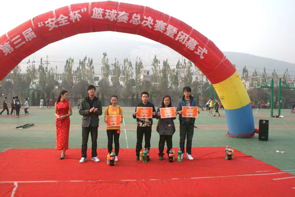 团委学生会体育部部长蒋恺致闭幕词。本次比赛中,安全11-3班摘得大赛桂冠,安全09-3班获得亚军,安全10-3班获得本次大赛的季军,安全09-1班、安全09-2班、安全09-4班、安全08-2班、安全08-3班获得“安全杯”篮球挑战赛三等奖,安全10-1班、安全10-2班、安全11-1班、安全11-2班获得了“安全杯”篮球挑战赛精神文明奖。其中安全11-3班的李钊同学拿到了本次比赛的MVP奖。